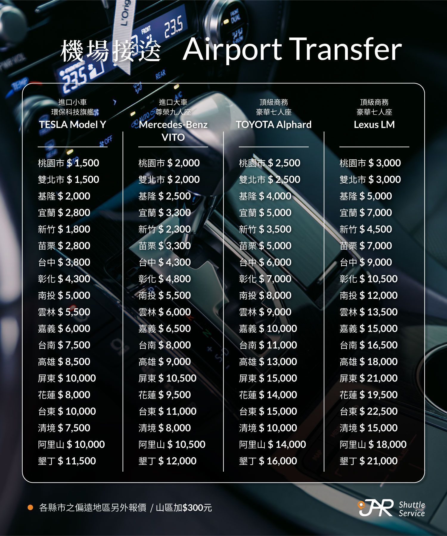 不論清晨或深夜,JAP提供全天候機場接送服務,搭配專屬司機與多種車款選擇。